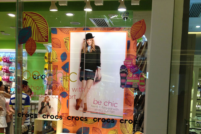 深圳生彩噴繪為Crocs卡洛馳國際,提供廣告物料的加工生產(chǎn),包括展示道具,掛畫,櫥窗貼紙,透明貼紙,電腦界字玻璃貼,電腦刻字貼,正噴燈片,韓國燈片,柜臺3M貼,櫥窗陳列地貼,PVC廣告板,產(chǎn)品陳列道具,亞克力展示制品等等。