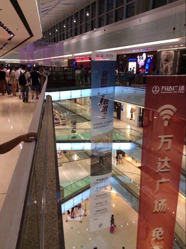 賣場(chǎng),城市購物綜合體,MALL的中庭廣告吊旗,都是采用雙面布或雙面網(wǎng)格布廣告畫,因?yàn)檫@兩種布平直,不卷邊,噴畫效果好。