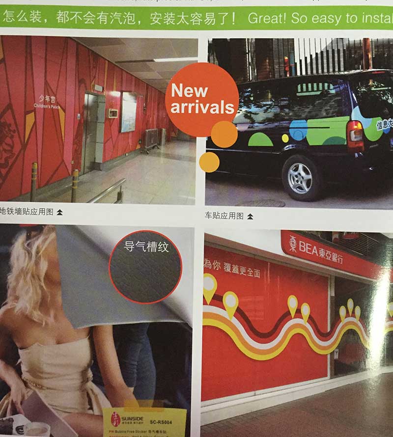 廣告噴繪,燈片噴繪,燈布噴繪,貼紙噴繪,廣告解決方案 導(dǎo)氣槽不干膠,面材成分是PVC,粘性強(qiáng),膠面有紋路,可以排出安裝時(shí)產(chǎn)生的氣體,不留殘膠。 應(yīng)用:適用于墻面,玻璃,車(chē)身貼,標(biāo)簽等廣告。 特性:可移,防水防曬,無(wú)氣泡,戶內(nèi)戶外應(yīng)用,易安裝。